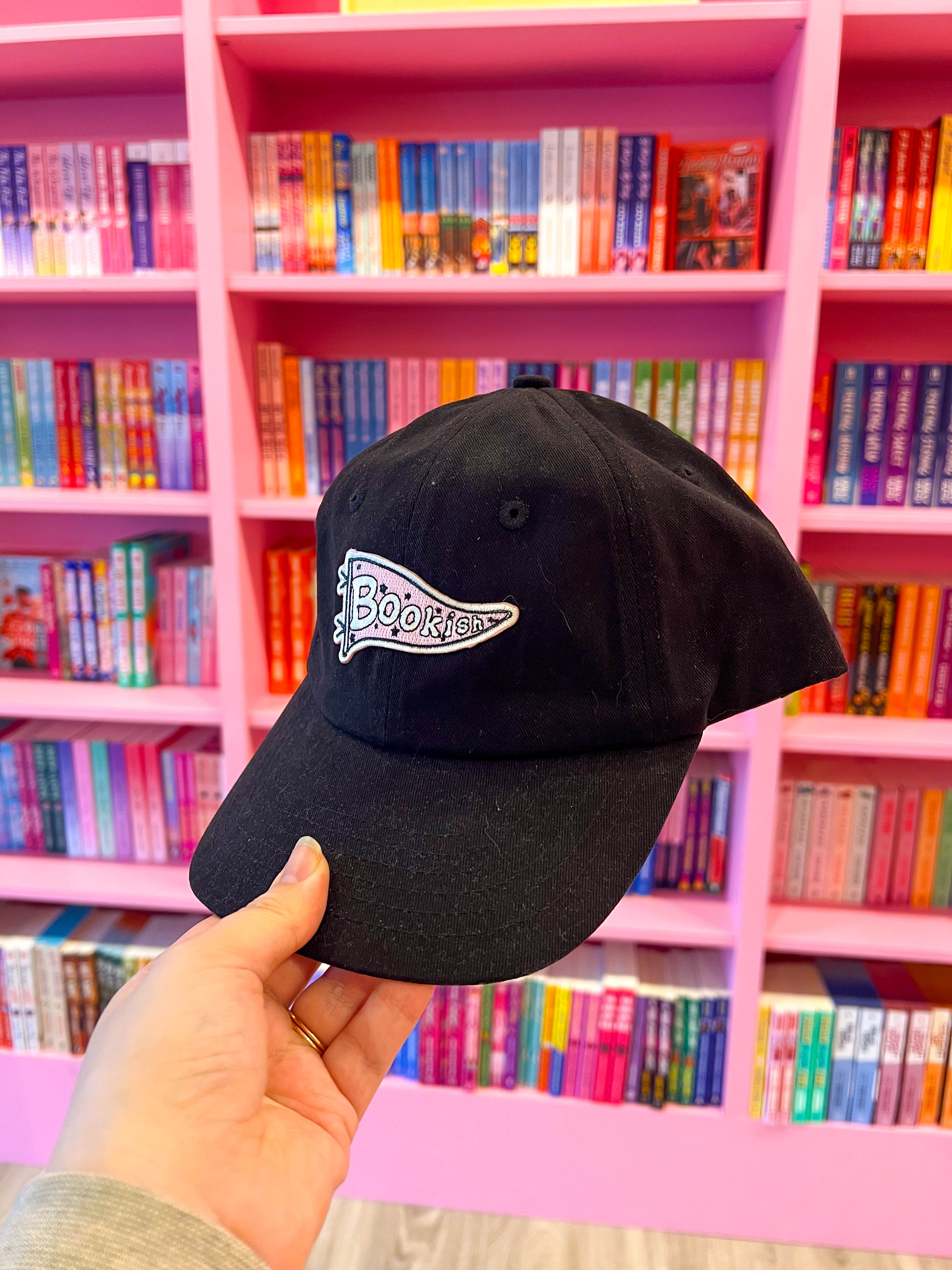 The Bookish Pennant Hat is the perfect baseball hat to wear around town and add some bookish charm to your outfit.